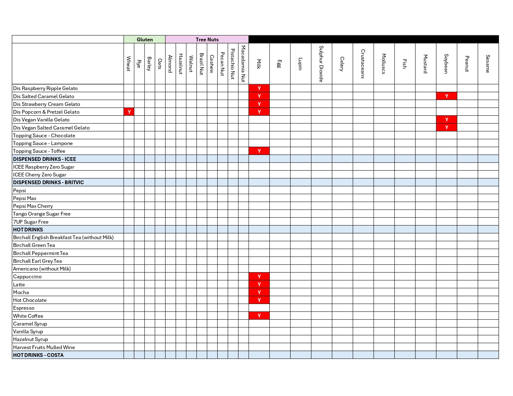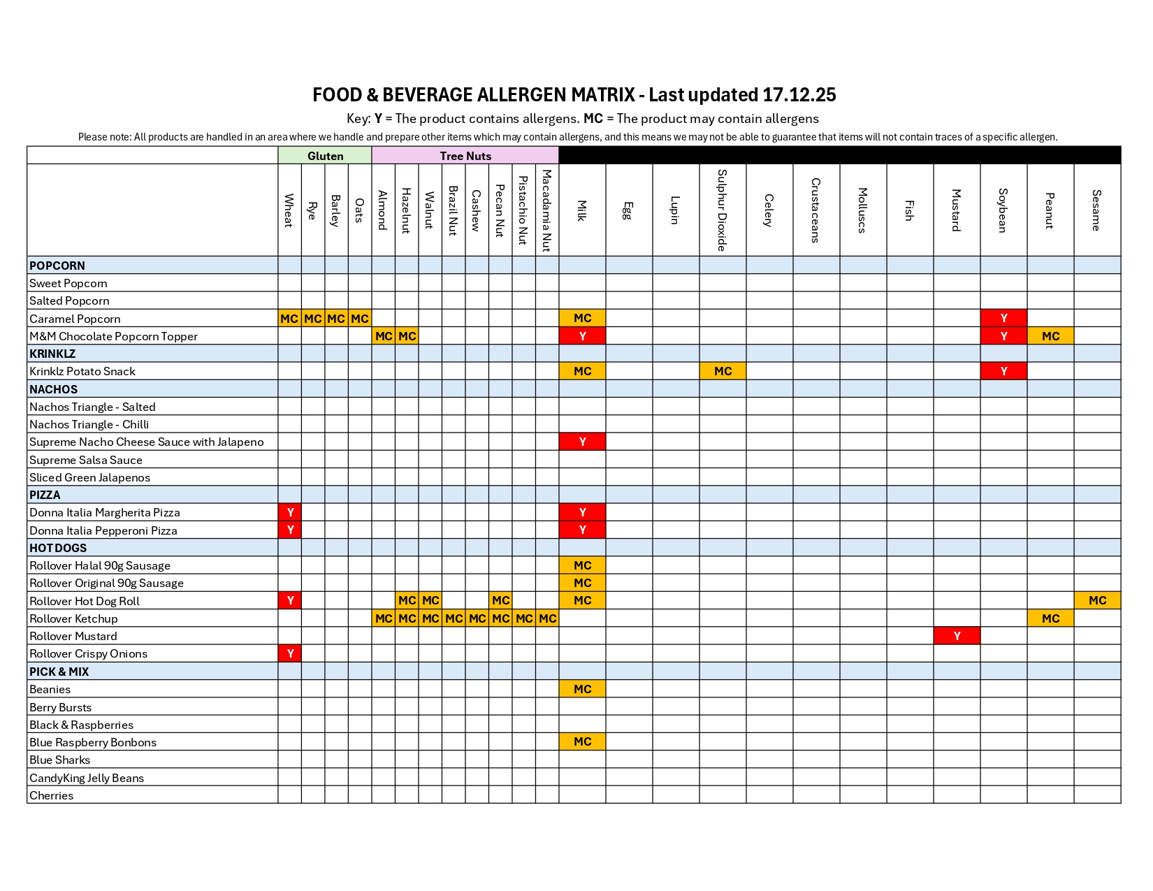 Allergen Matrix